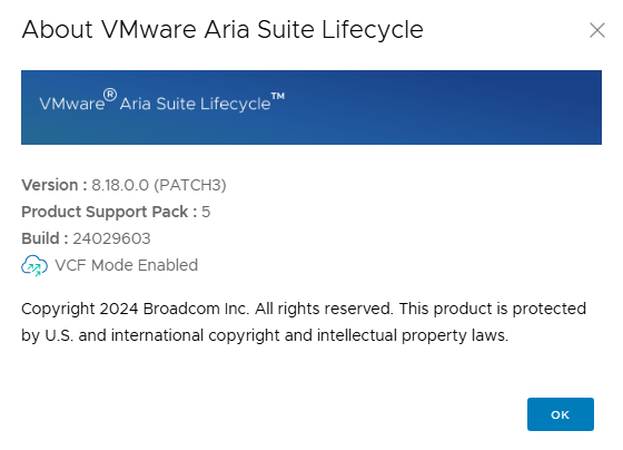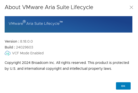 VCF Mode: EnabledInfo block of vRSLCM OOB VCF 5.2.2