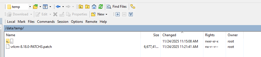 Upload Patch package to vRSLCM appliance, for example, into folder /data/temp: